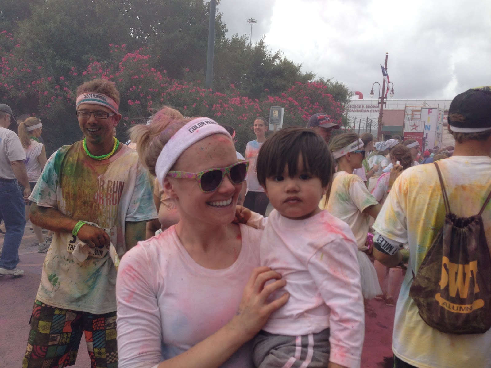 This past weekend Myself, L and some co-workers did The Color Run in Houston. It was so much fun!! We got there early and were a little worried because there were not many other cars and we were hoping there would be more people. Well...Many people there were!!